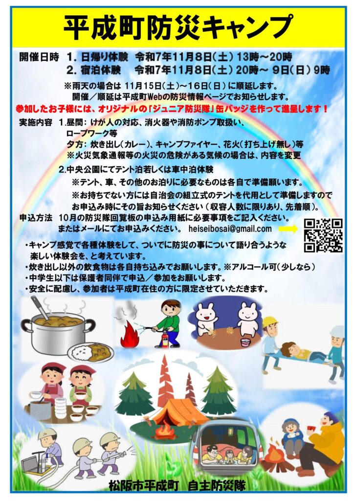 2025.10.20 美花隊・防災隊だより 平成町防災キャンプ開催案内 この記事のタイトルとURLをコピーする Post Share RSS Pin it この記事のタイトルとURLをコピーする R7.10 自主防災隊だより 前の記事
