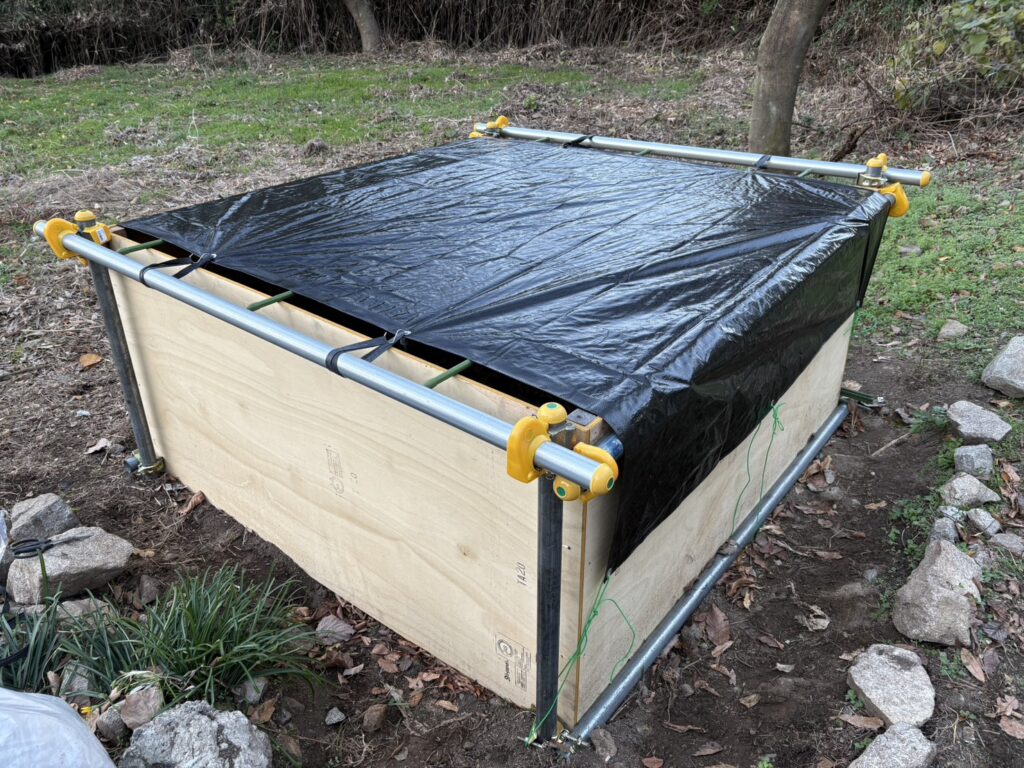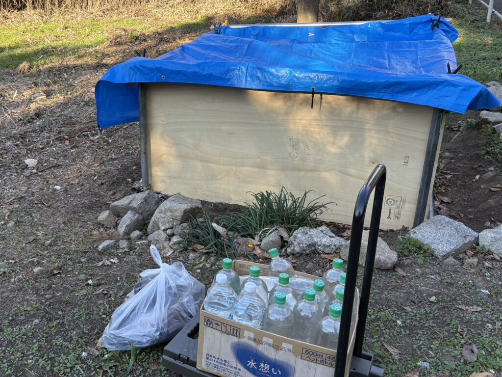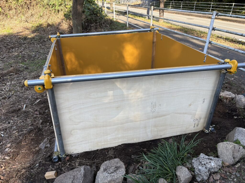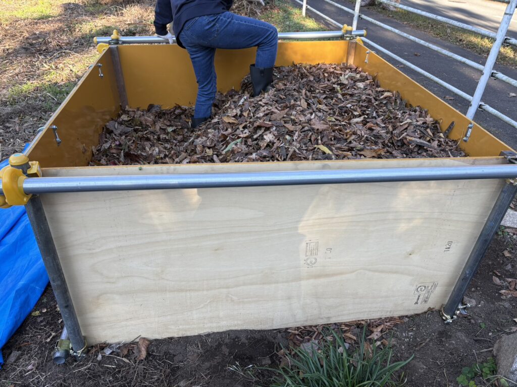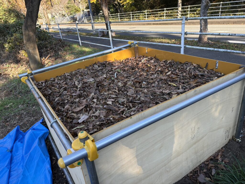 美花隊では、この冬から町の落ち葉を活かした腐葉土づくりに取り組んでいます。集めた落ち葉に米ぬかと水を加えて発酵させ、定期的に撹拌しながら、春まで時間をかけてじっくり熟成させていきます。