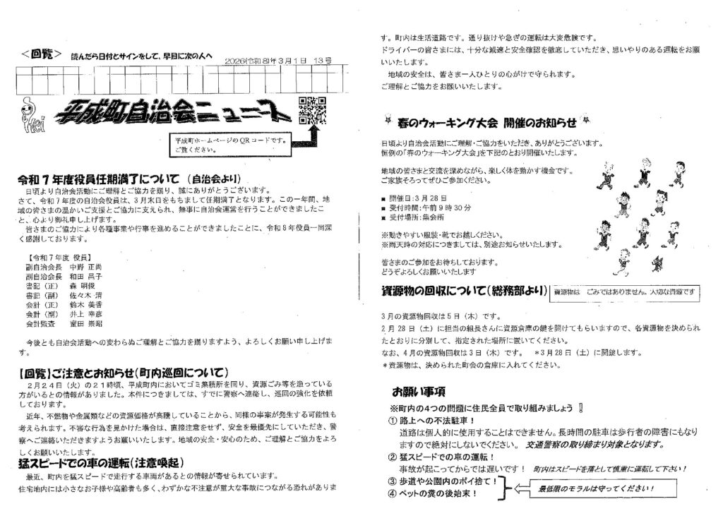 2026.03.01 平成町自治会ニュース R8年3月 回覧&広報! この記事のタイトルとURLをコピーする Post Share RSS Pin it この記事のタイトルとURLをコピーする R8年2月 回覧&広報! 前の記事